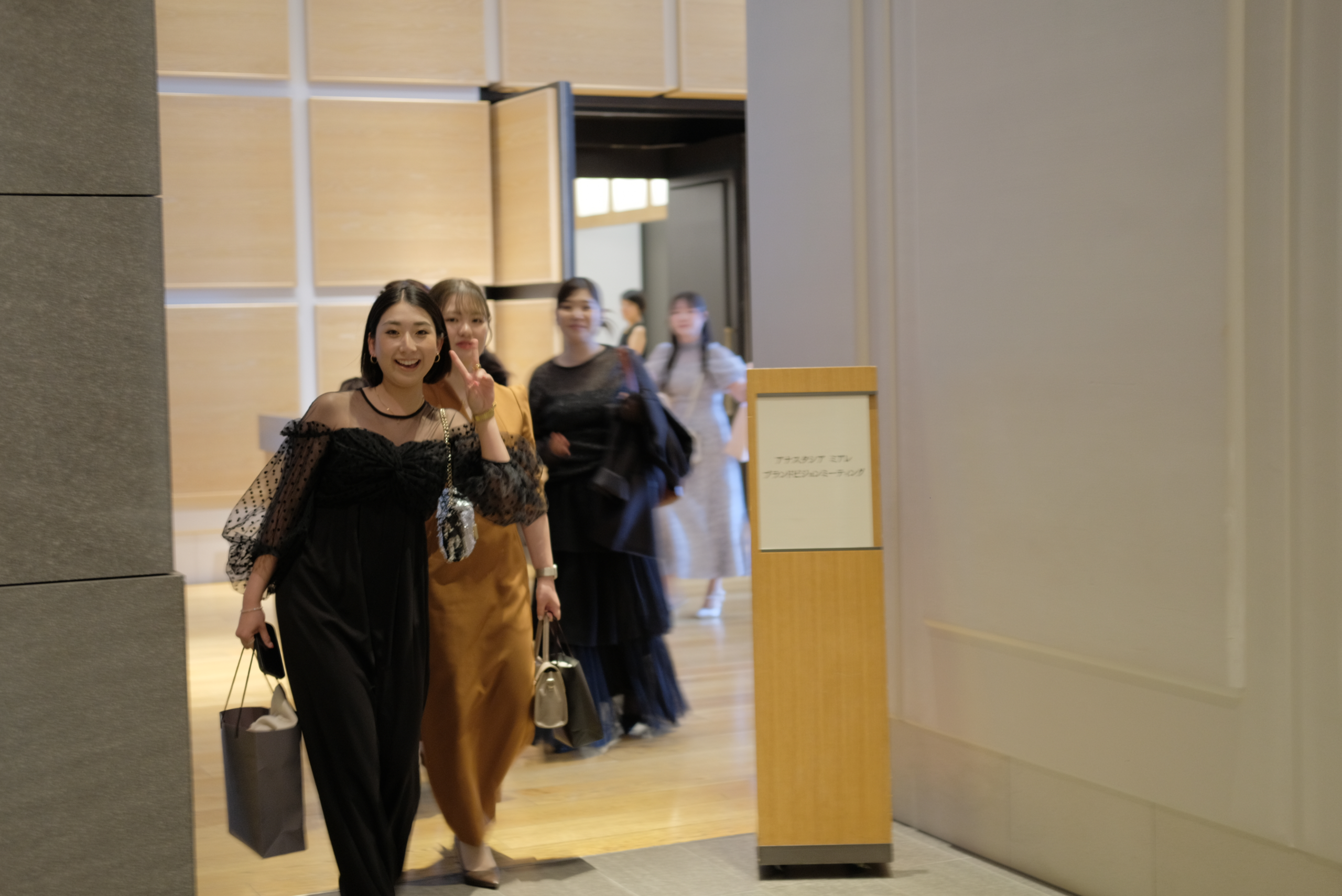 都内の高層ホテルの会場には、フォーマルドレスや着物など、それぞれが“アナスタシア ミアレ”というブランドを纏うように装った姿が並び、静かな緊張と誇りの空気に包まれていました。